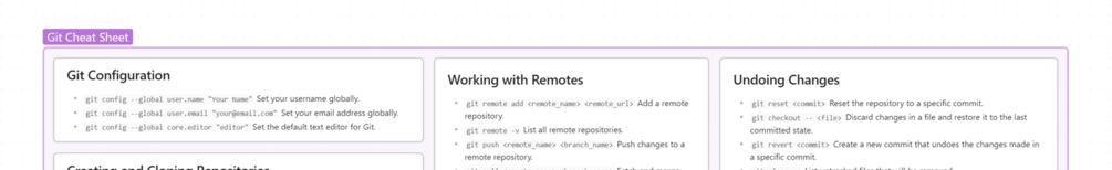 💻 With this cheat sheet, you can quickly access commands to perform tasks such as cloning a remote repository, stashing changes, pulling and pushing commits, and much more. It serves as a quick reference guide to save you time and make your Git tasks easier.